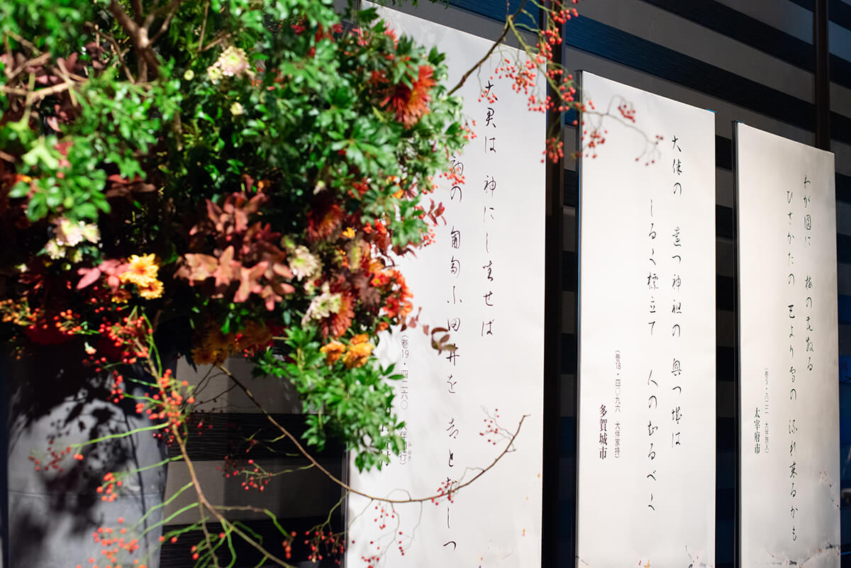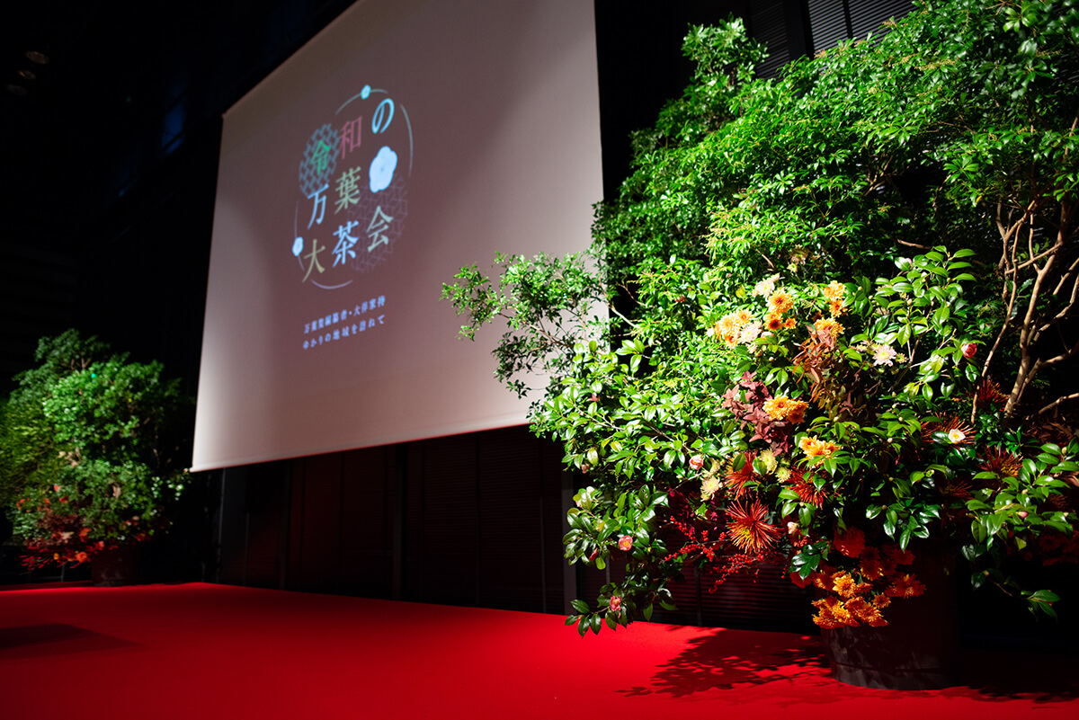文化庁「日本博」の一つの事業として、新しい元号「令和」の典拠となった万葉集「梅花の宴」をモチーフとした万葉大茶会を開催いたしました。万葉集ゆかりの都市が連携をし参加自治体のプレゼンテーションや万葉の歴史講演会、そして日本の美しい四季を歌った万葉集をきっかけとし環境に配慮する為、水素カーの力を使ったLUNA SEAのSUGIZO様によるコンサートやお茶会を開催いたしました。